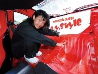 現行型SクラスのフェイスとEクラスのテールがゴッソリとセンティアに移植されてて、もはや原型がまったくわかりましぇ〜ん!エンジンルームを見ても“ただ付いてるだけです”ってなかんじはまったくなし! レインフォースの加工もキレイ。FD3Sの13B-REWに載せ換えられてTD06-25Gタービンを装着したエンジンは推定450psというからグレート! もんくなしのパワー番長だ。ただ、おしいのは車検がないってことで、フロントの灯火類がひとつも付いていなかったこと。高山くんの学ドリは今年で最後だけど、次回作に期待しちゃう。別のページを開けて待ってるぜい! |